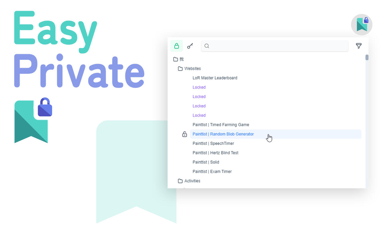 Chrome extension that allows easy use of private bookmarks.